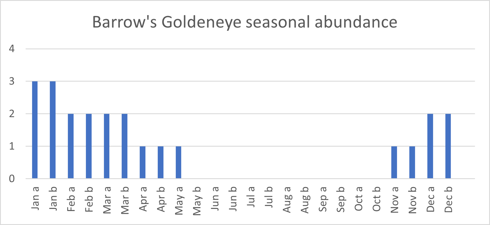 Relative abundance based on eBird data. Numbers indicate likelihood of finding this species in suitable habitat at a given time of year, not actual numbers encountered.